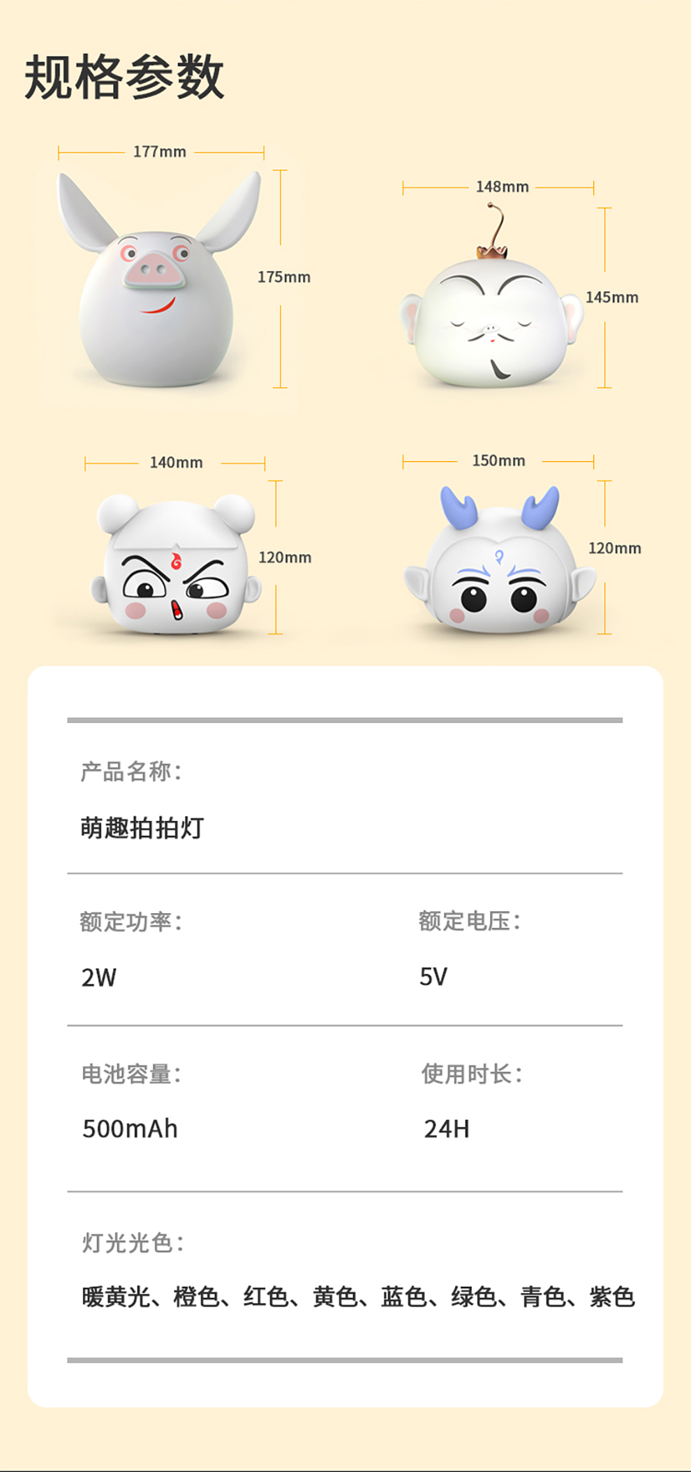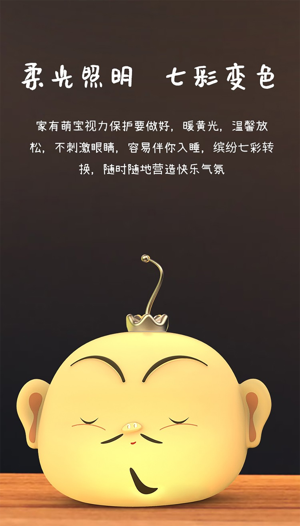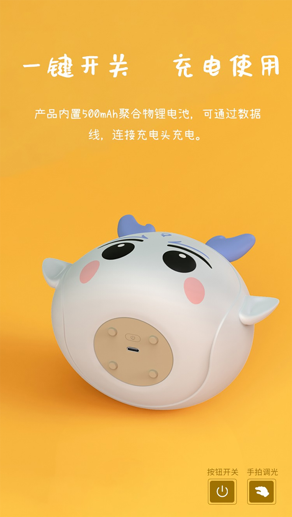 產品簡述:上電不工作,短按輕觸開關,開啟主燈。中途觸發立即關機。長按無極調光。有不斷電記憶,記憶關閉前亮度。輕拍一下燈亮,再輕拍下更換燈光顏色,依次循環。輕拍可光機。